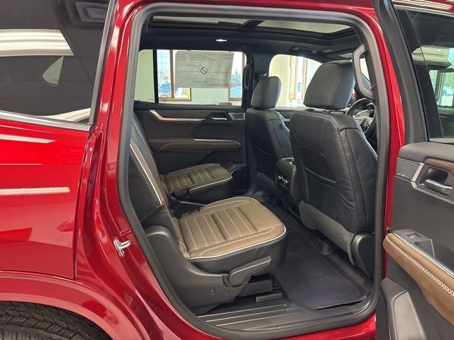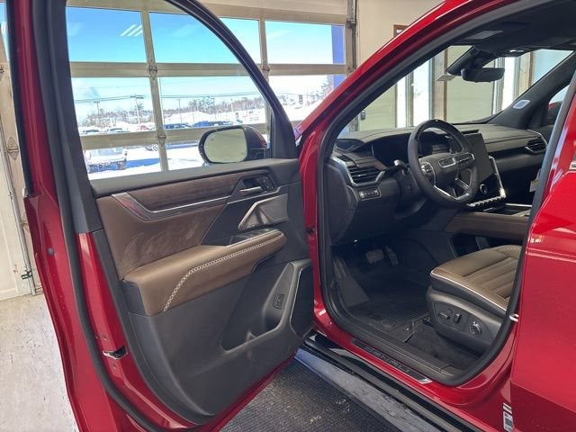 Volcanic Red Tintcoat 2026 GMC Acadia Denali Ultimate AWD 8-Speed Automatic 2.5L DOHC AWD, Woodland Mahogany Leather.